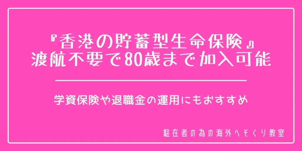 渡航不要で80歳まで加入可能な『香港の貯蓄型生命保険』