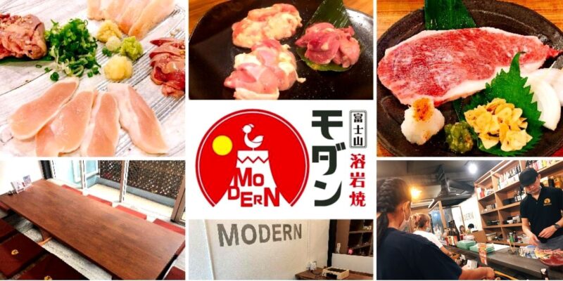富士山国立公園で採掘された溶岩石プレートで焼く、『溶岩焼き』を食べる事ができる居酒屋&レストラン。