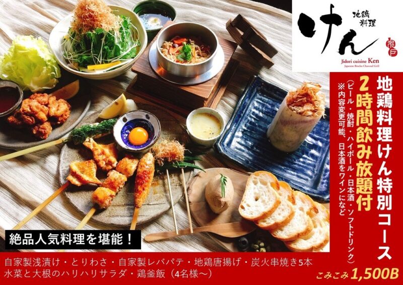 飲み放題:生ビール、ハイボール、サワー各種、焼酎(芋、麦)、ソフトドリンク