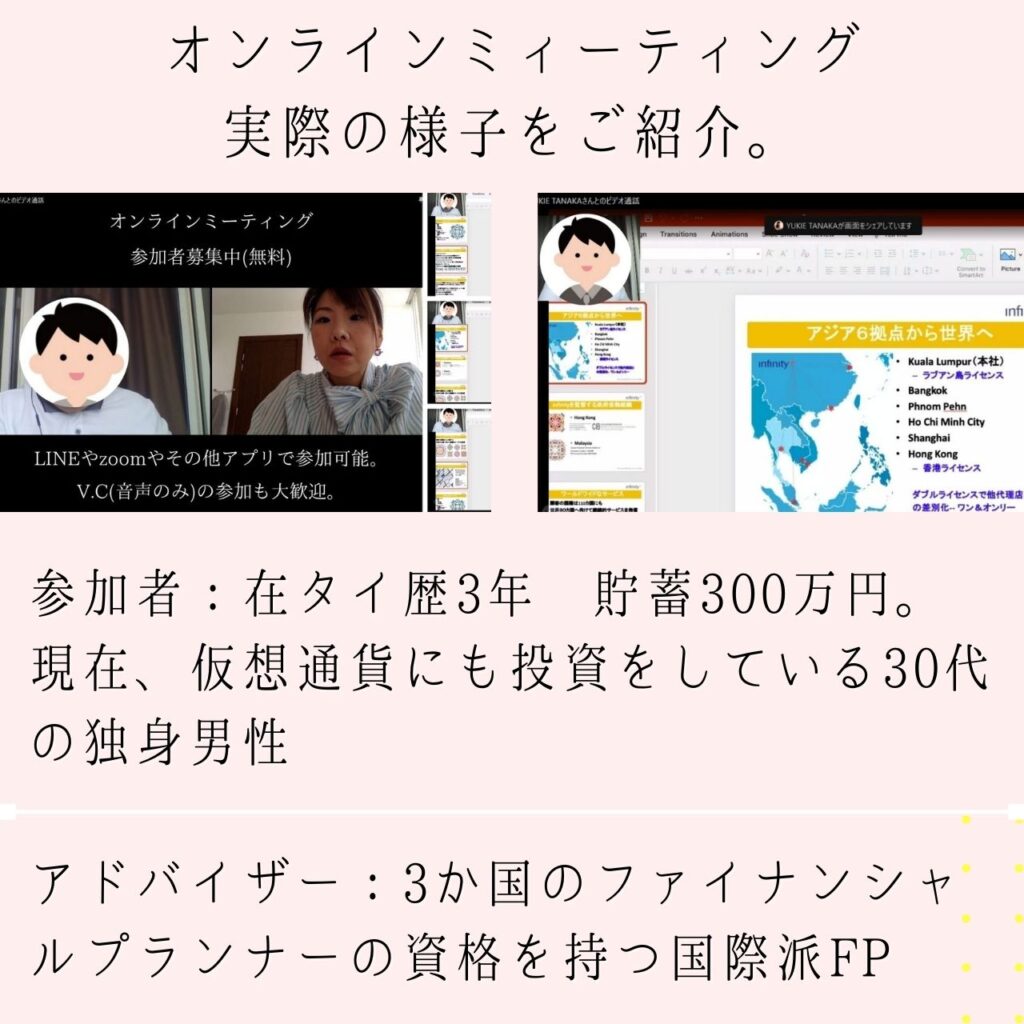 タイ在住者の為のお金の育て方 LINEで参加するオンラインミーティング タイで仮想通貨の投資している日本人の30代男性の例