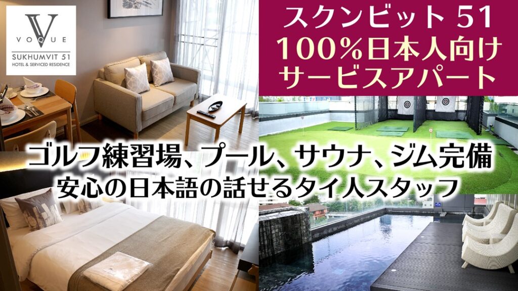 ヴォーク サービス レジデンス(VOQUE Hotel & Serviced Residence)は、トンローエリアのスクンビットソイ51にある100%日本人向けのサービスアパートです。