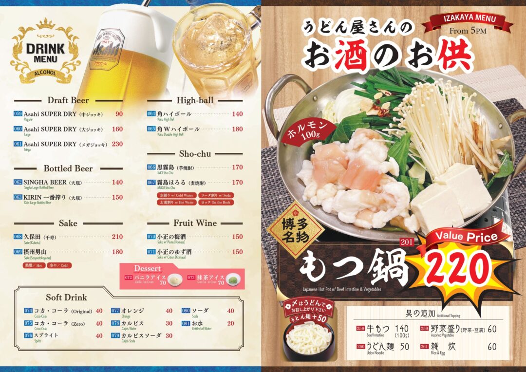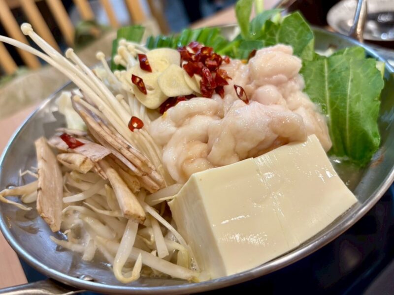 特にもつ鍋にハマってます!220Bでこの量と美味しさ、+うどん50Bが最高です。うどんは、鍋が沸騰して豆腐と野菜を少し食たところに入れると満タンになりますが、煮込んでから食べたらもつのスープがうどんにしみ込んで最高に美味しいです。