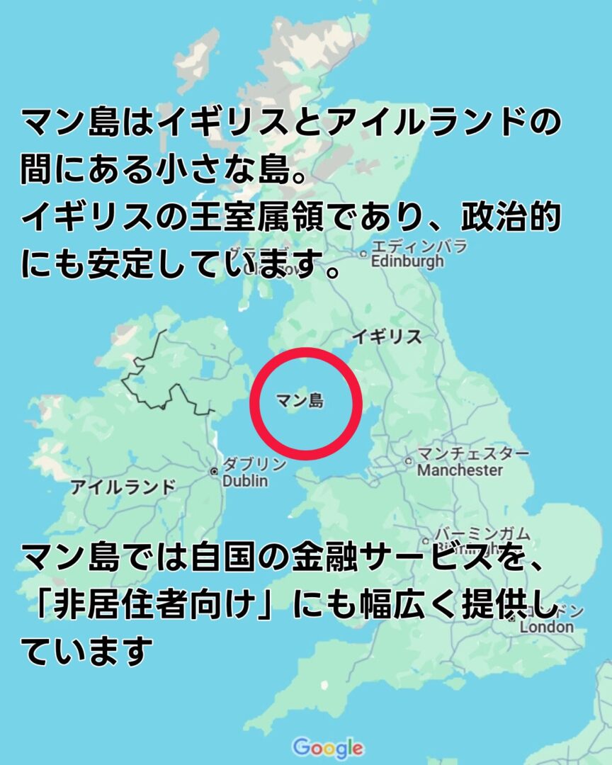 - マン島はイギリスとアイルランドの間にある小さな島。 イギリスの王室属領であり、政治的にも安定しています。