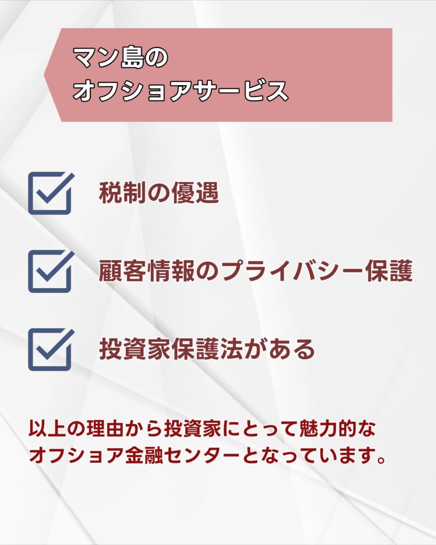 - マン島では自国の金融サービスを、 「非居住者向け」にも幅広く提供しています。