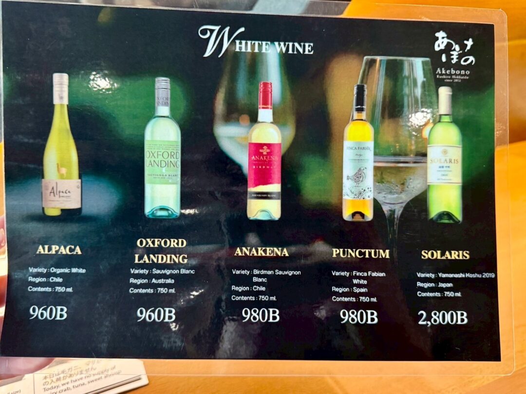 ★その他日本酒、1,000B以下の白ワインもおすすめです。
