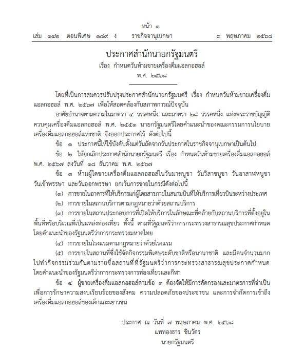 タイ旅行で気になる禁酒日のルールが主要仏教祝日の酒類販売が特定場所で許可へ変更となりました。
