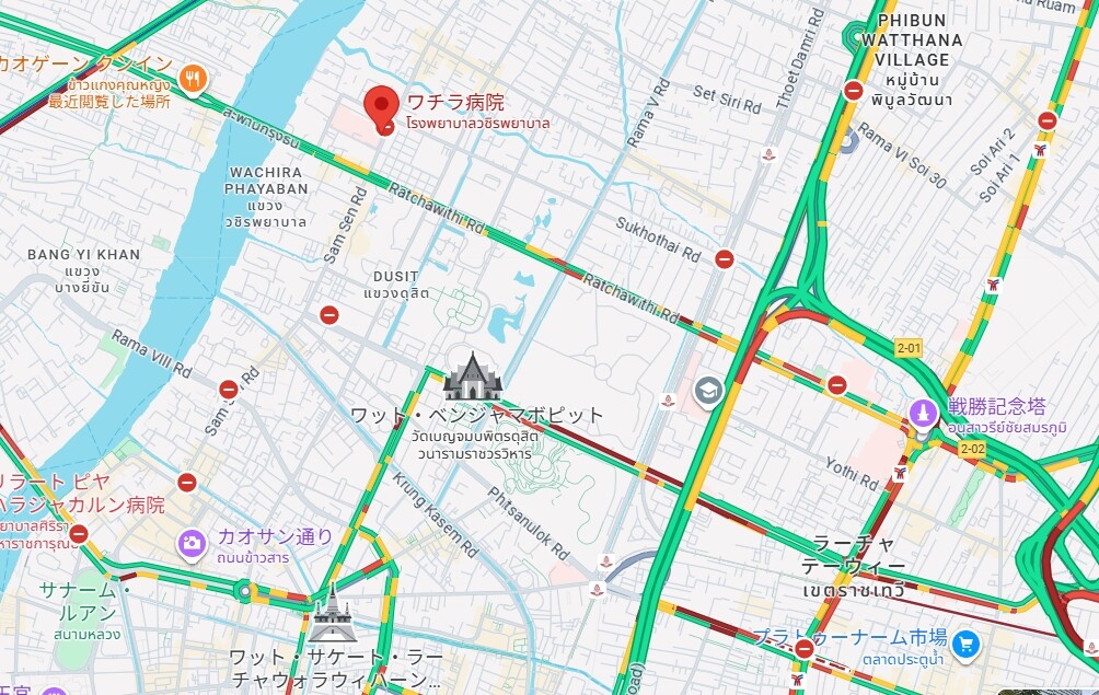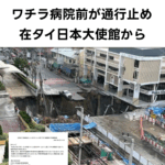 この事故により、サームセーン通りはワチラ交差点からサンキー交差点までの区間で交通が規制されています。また、現場に隣接するワチラ病院では入院患者ら約4,000人が避難し、外来診療も休止するなどの措置が取られています。