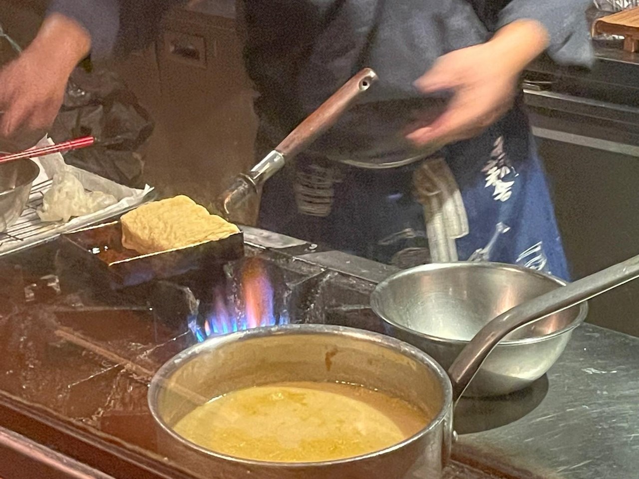 だし巻き卵を焼く地鶏けんのスタッフの画像