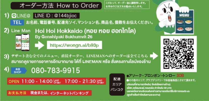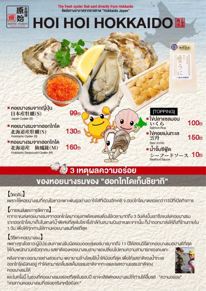久しぶりに来ました!牡蠣、刺身、いくら丼、そして何を食べても本当に美味しい!店員さんの対応もとても良かったです。店内は日本語が通じるスタッフもいるので安心です。バンコクで北海道の美味しいものが食べたいなら、ここに来るべきです。