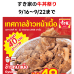 牛丼49バーツ すき家の牛丼祭り 9/16~9/22まで