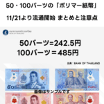 2025年11月21日より、タイ銀行(BOT)から新しい50バーツおよび100バーツ紙幣の発行・流通が開始されました。